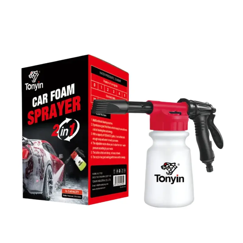 Segredo do Car Pro: Todo o profissional sabe que a lavagem inadequada do carro pode causar sujidade e fuligem, danificando a pintura e produzindo riscos. A utilização da pistola de lavagem de carros em espuma TOYIN ajuda a transportar as partículas de sujidade e fuligem suavemente para longe de superfícies pintadas ou cromadas. de fugas, este pulverizador de espuma é adequado para superfícies delicadas, não risca a pintura do carro, janelas, telhados ou paredes, ao mesmo tempo que proporciona resultados de limpeza profissionais. Torne a lavagem do carro fácil e rápida: liga-se à mangueira de jardim padrão e está pronto a utilizar. Não há necessidade de equipamento adicional ou maquinaria pesada. Basta ligar, pulverizar e está pronto. Utilize esta pistola de espuma de canhão para lavagem de carros para limpar camiões, motos, barcos, reboques, mobiliário de exterior e muito mais. Basta ajustar as definições de pressão da água e proporção de espuma de acordo com as suas necessidades. Concentração de espuma ajustável: O pulverizador de espuma mistura a água da mangueira com a solução de sabão para formar a espuma espessa perfeita para a lavagem de automóveis. Com 6 configurações de pulverização de espuma e uma pulverização de enxaguamento, este kit completo para lavagem de carros com pistola de espuma é tudo o que precisa para obter resultados profissionais em casa. Precisará de mais ação de espuma nos carros especialmente sujos. Liga-se a qualquer mangueira de jardim sem complicações. A pega ergonómica e o corpo antiderrapante permitem uma experiência de limpeza confortável.