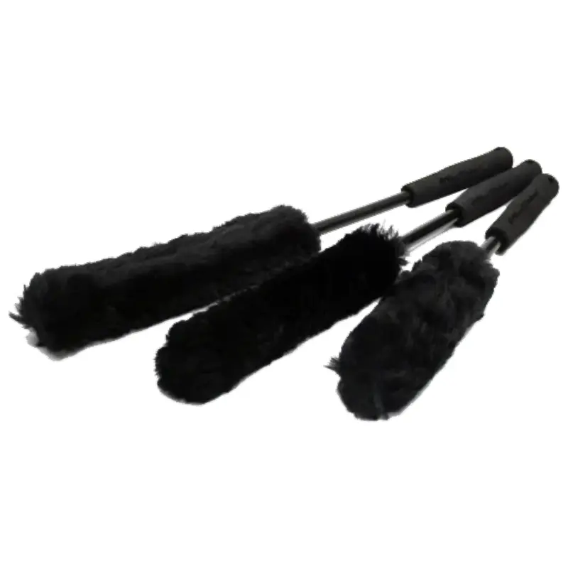 Limpe facilmente as áreas de difícil acesso. Dobre e flexione para caber em espaços abertos. Construído com lã da mais alta qualidade. Seguro em rodas e aros de todos os acabamentos. O kit inclui 3 pincéis – tamanhos de 19 polegadas, 12 polegadas e 8 polegadas.